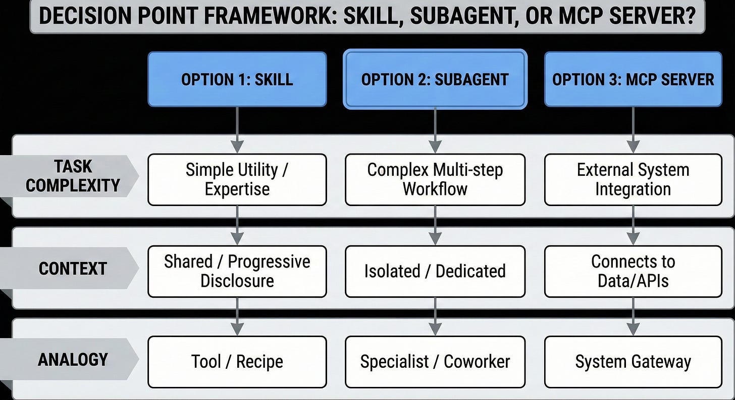Choosing between skills, subagents, and MCP servers in Claude Code